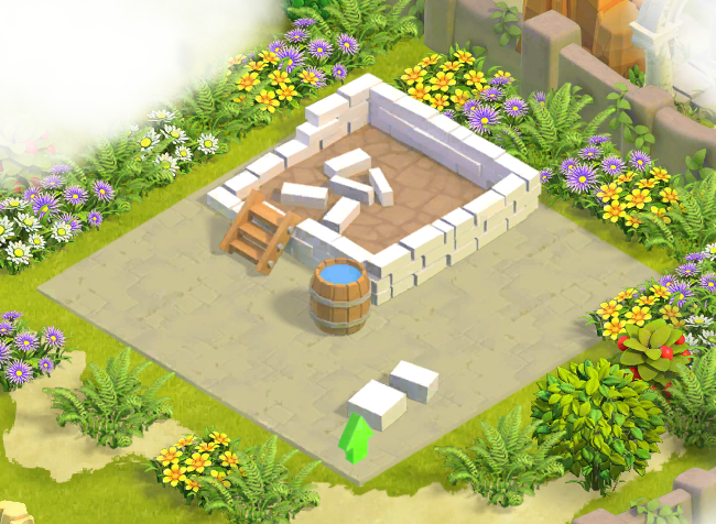 Der grüne Pfeil zeigt das Gebäude an, mit dem du für diese konkrete Aufgabe interagieren musst. Wenn du also beispielsweise etwas bauen oder verbessern oder eine bestimmte Ressource herstellen musst, zeigt der grüne Pfeil auf das Gebäude, mit dem du jetzt interagieren musst, um in dieser Geschichte voranzukommen.